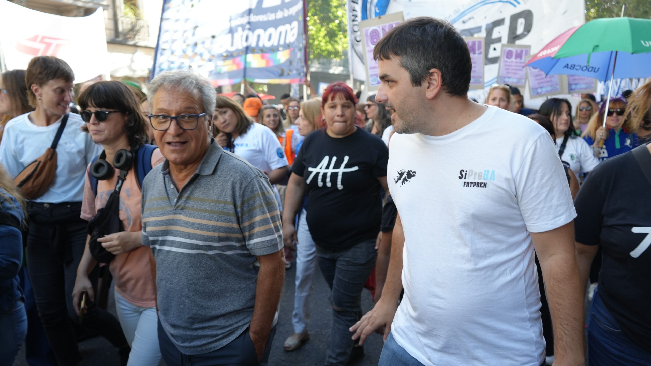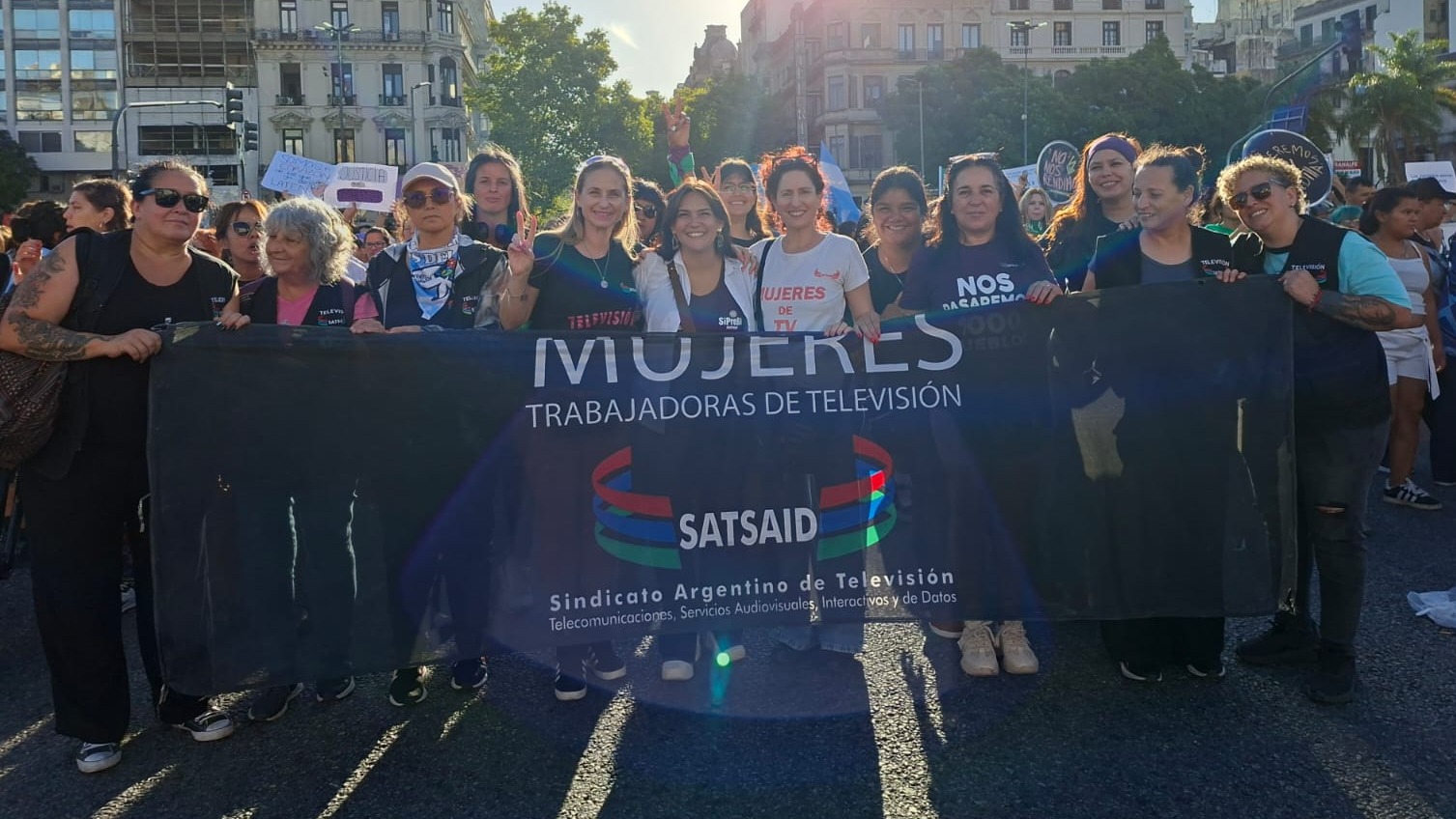 La columna del SATSAID, que partió desde la intersección de Av. de Mayo y Salta en la Ciudad de Buenos Aires, estuvo encabezada por el secretario General, Horacio Arreceygor, la secretaria de Mujer y Familia Marianela Mel, la secretaria de Cultura Mariana Vincent, la secretaria de Mujer y Familia de la seccional Buenos Aires Zona 2 Lilian Cepeda, delegados, delegadas, trabajadores y trabajadoras del AMBA. Además, contó con la presencia de la secretaria de Género de la CGT y secretaria General de FATPREN (Federación Argentina de Trabajadores de Prensa), Carla Gaudensi.