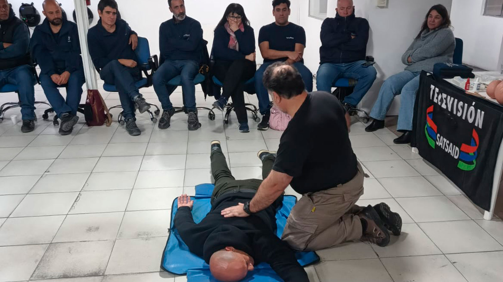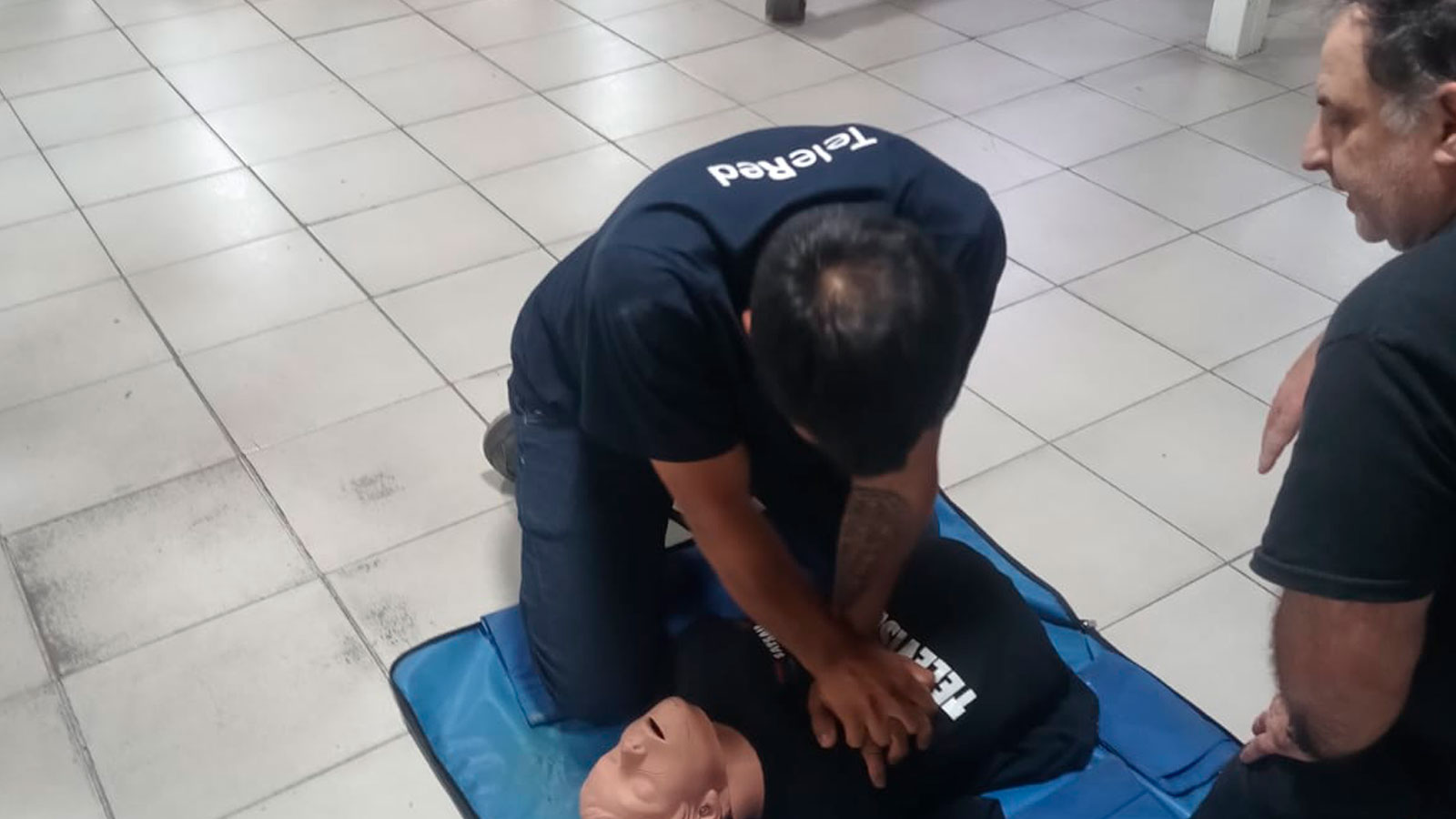 La Secretaría de Higiene y Seguridad del SATSAID realizó, en conjunto con la seccional Buenos Aires Zona I, dos capacitaciones en primeros auxilios, reanimación cardiopulmonar (RCP) y desfibrilador externo automático (DEA), destinada a los trabajadores de Telered de San Miguel, Provincia de Buenos Aires. Los encuentros, realizados el 29 de octubre y el 6 de noviembre, estuvieron a cargo de los capacitadores Gustavo Calles y Guillermo Cattaino, acompañados por el secretario de Higiene y Seguridad local del sindicato, Gastón Burghi.