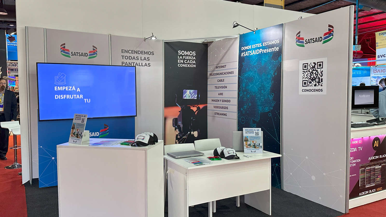 A lo largo del evento, que reúne a las principales empresas de la industria audiovisual, delegados y delegadas del SATSAID brindaron asesoramiento gremial e informaron sobre nuestra obra social TV Salud y los cursos de capacitación profesional a profesionales de la industria, estudiantes de carreras afines y visitantes, en una de las exposiciones más importantes del sector.