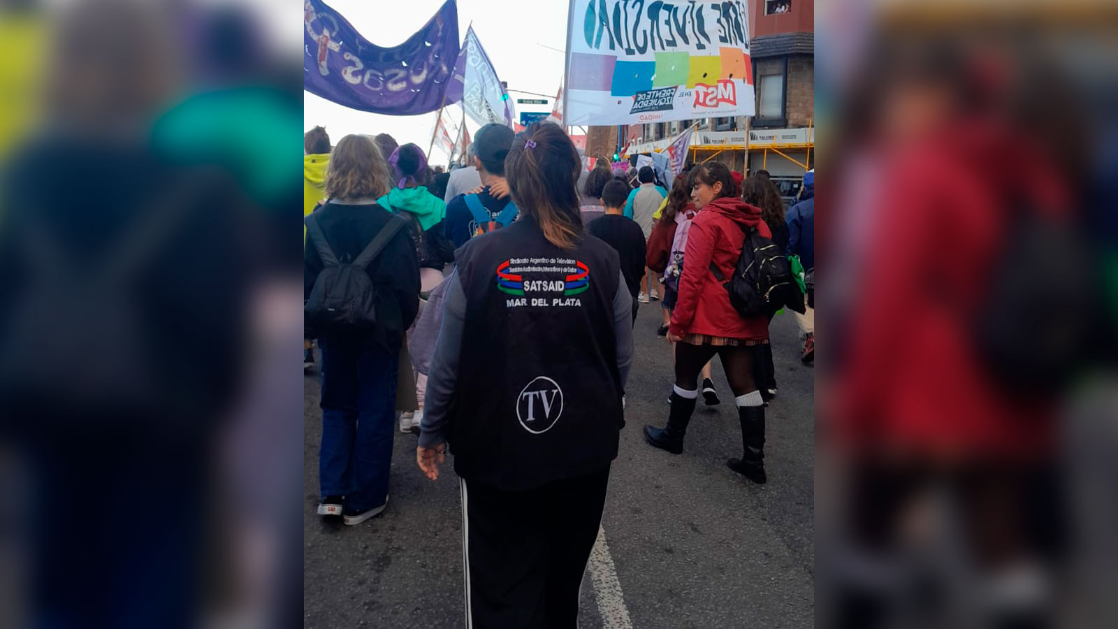 “Las trabajadoras de televisión y de telecomunicaciones marchamos reivindicando la lucha de quienes nos precedieron, de quienes han dejado su vida en las calles o en las fábricas para que hayamos conquistado todos los derechos que hoy llaman privilegios, aunque no lo sean”, expresó la secretaria de Mujer y Familia del Consejo Directivo Nacional, Marianela Mel y agregó: “Estos derechos, que están en peligro, nosotras entendemos que se defienden de esta manera. En unidad, con organización y con lucha”.