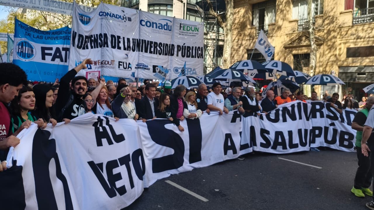 El SATSAID participó, junto a la Confederación General del Trabajo, de la multitudinaria movilización que convocó a miles de argentino y argentinas, en todo el país, para rechazar los vetos del presidente Javier Milei a la Ley de Financiamiento Universitario y a la Emergencia Pediátrica que se trataron y rechazaron, este miércoles, en la Cámara de Diputados del Congreso de la Nación.