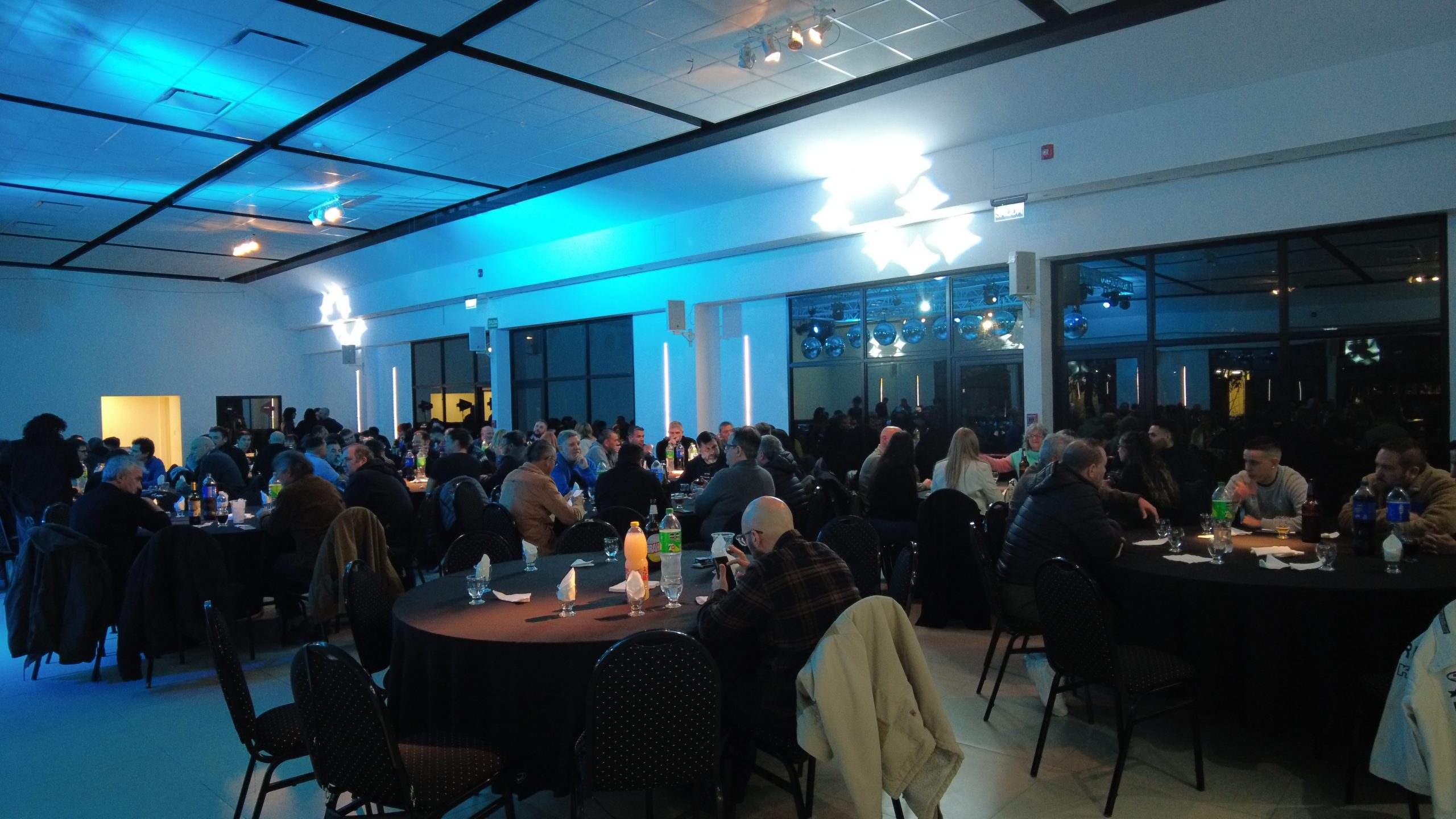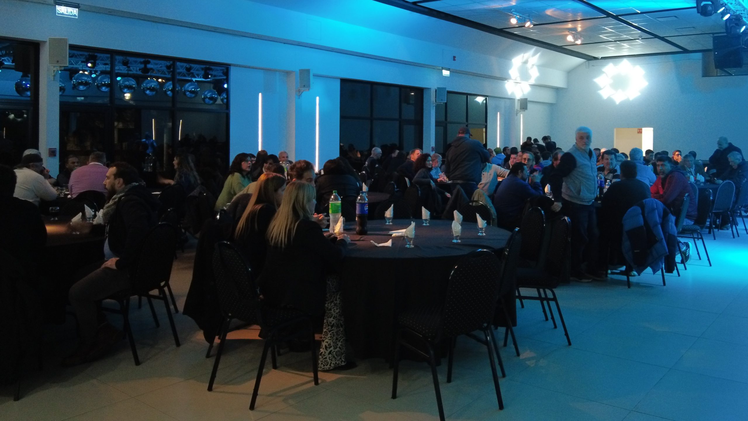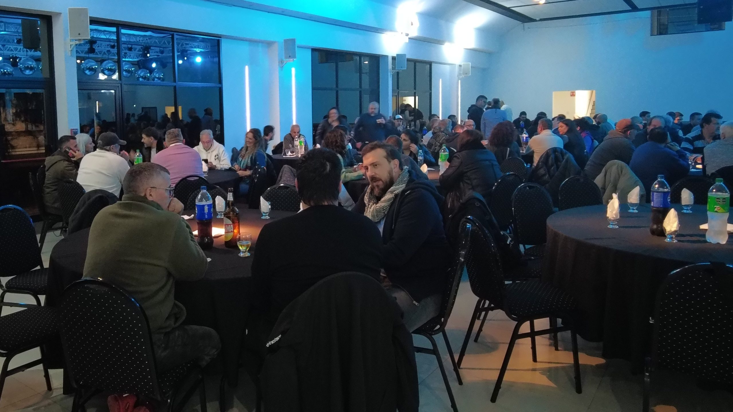 Los compañeros y compañeras disfrutaron una cena con pizza y empanadas en el amplio salón principal del camping que el gremio tiene en Moreno, mientras se proyectaban en las pantallas gigantes los videos conmemorativos por el 12 de Agosto y otro que resume el último año de lucha del sindicato.