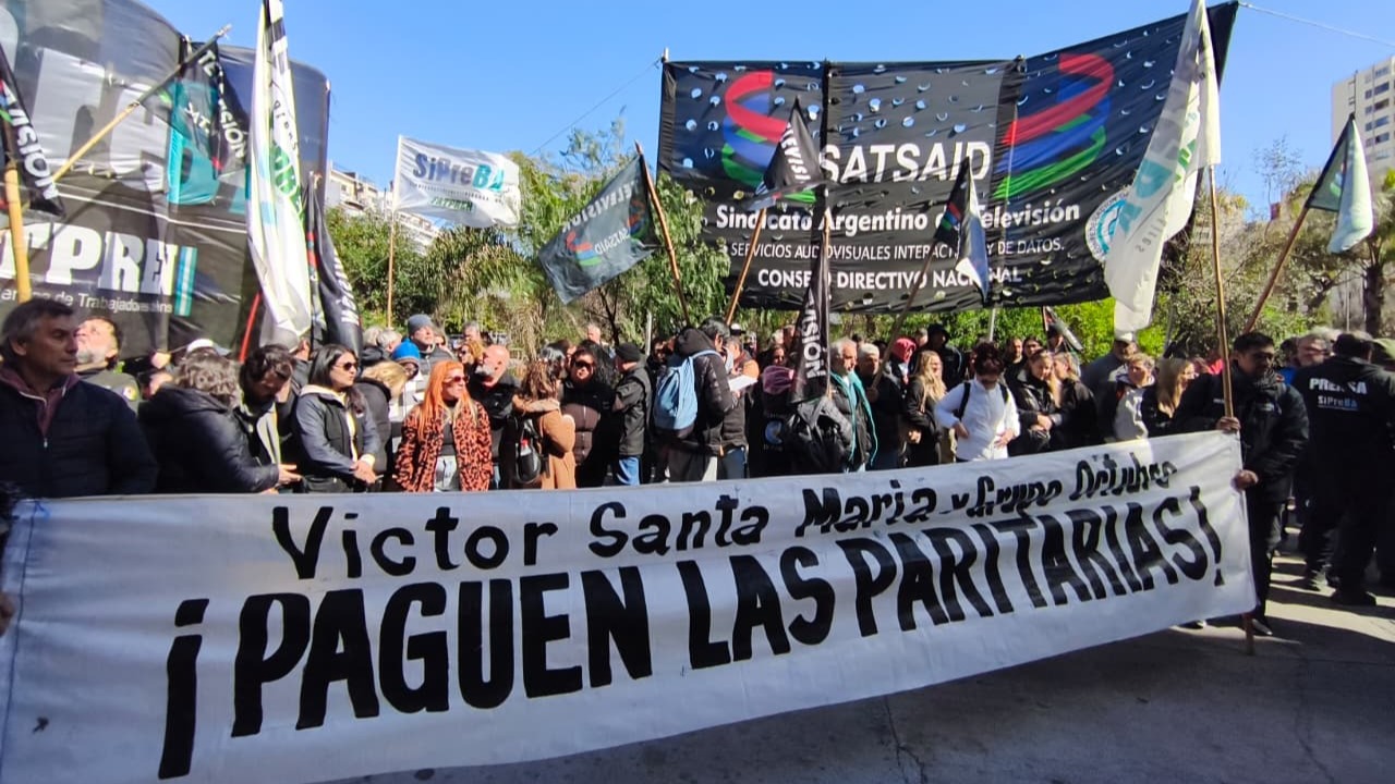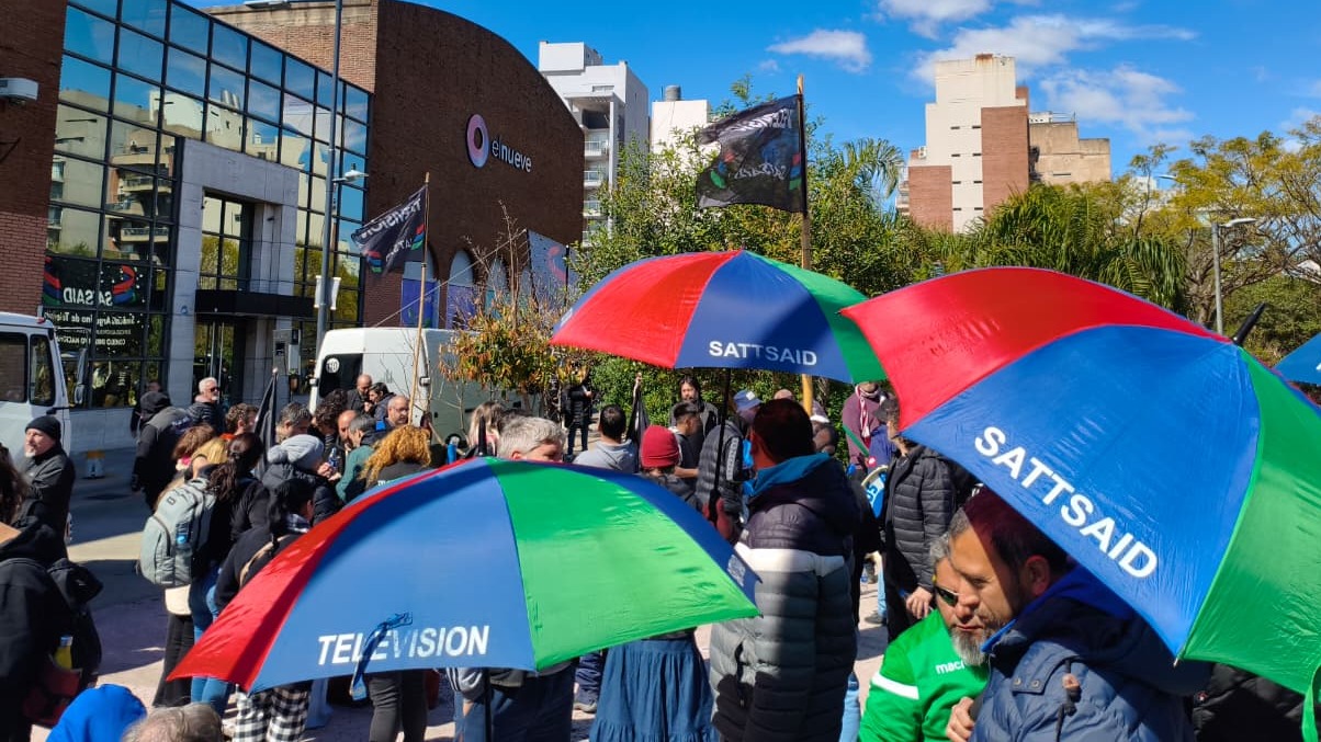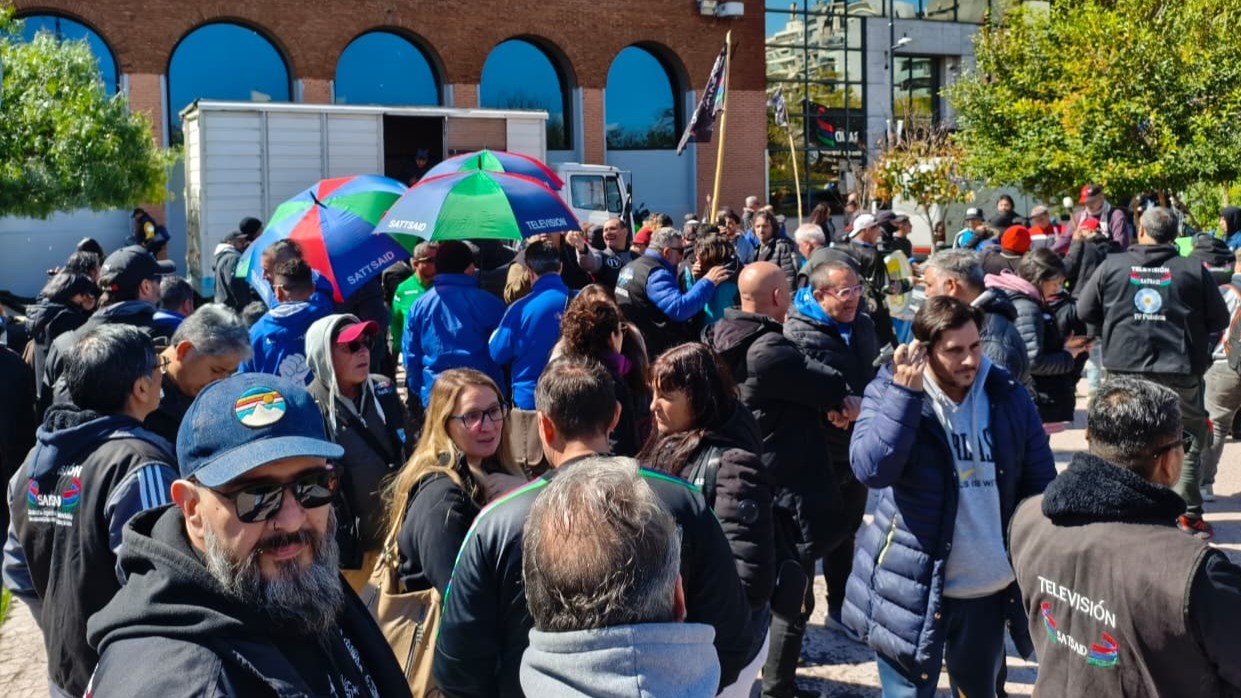 El SATSAID se movilizó junto a SiPreBA a las puertas de IP Noticias y Canal 9.