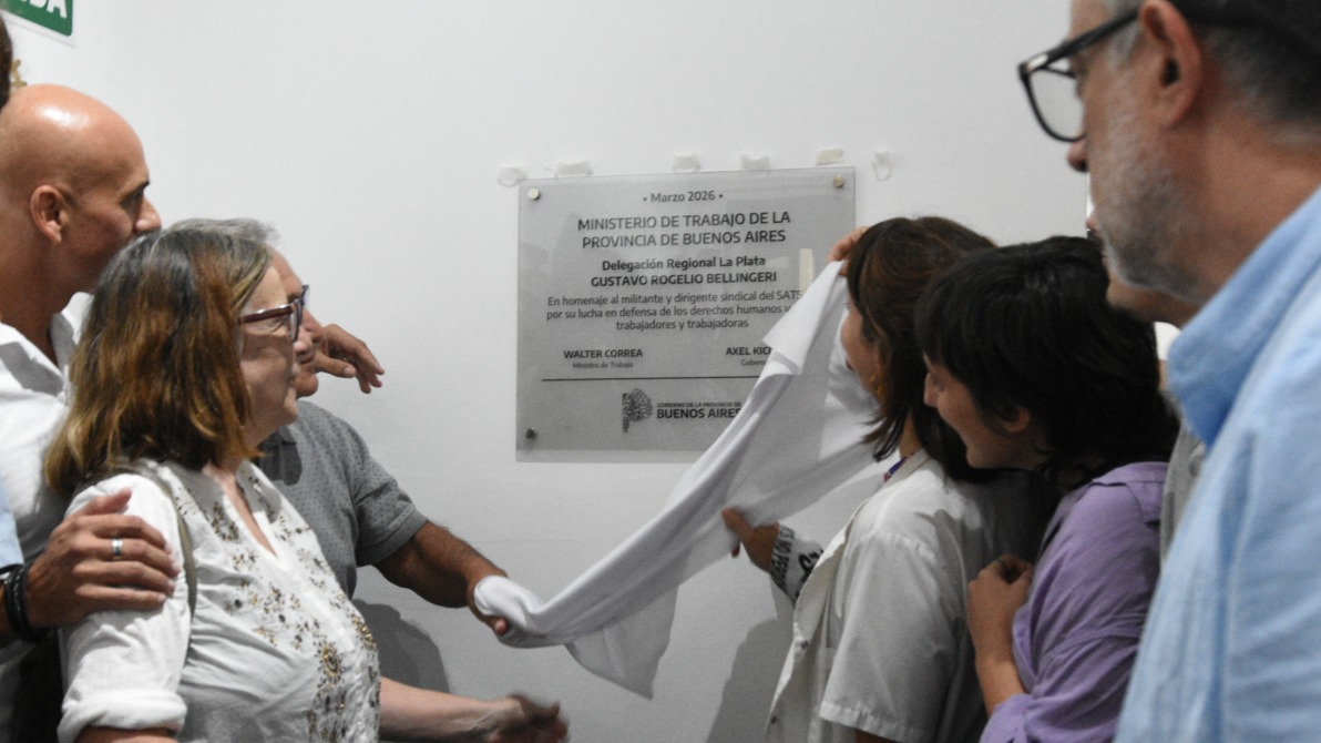 A continuación, entre una montaña de aplausos incontenible, se descubrió una placa conmemorativa que reza: “Delegación Regional La Plata ‘Gustavo Rogelio Bellingeri’, en homenaje al militante y dirigente sindical del SATSAID, por su lucha en defensa de los Derechos Humanos y de los trabajadores y trabajadoras”.