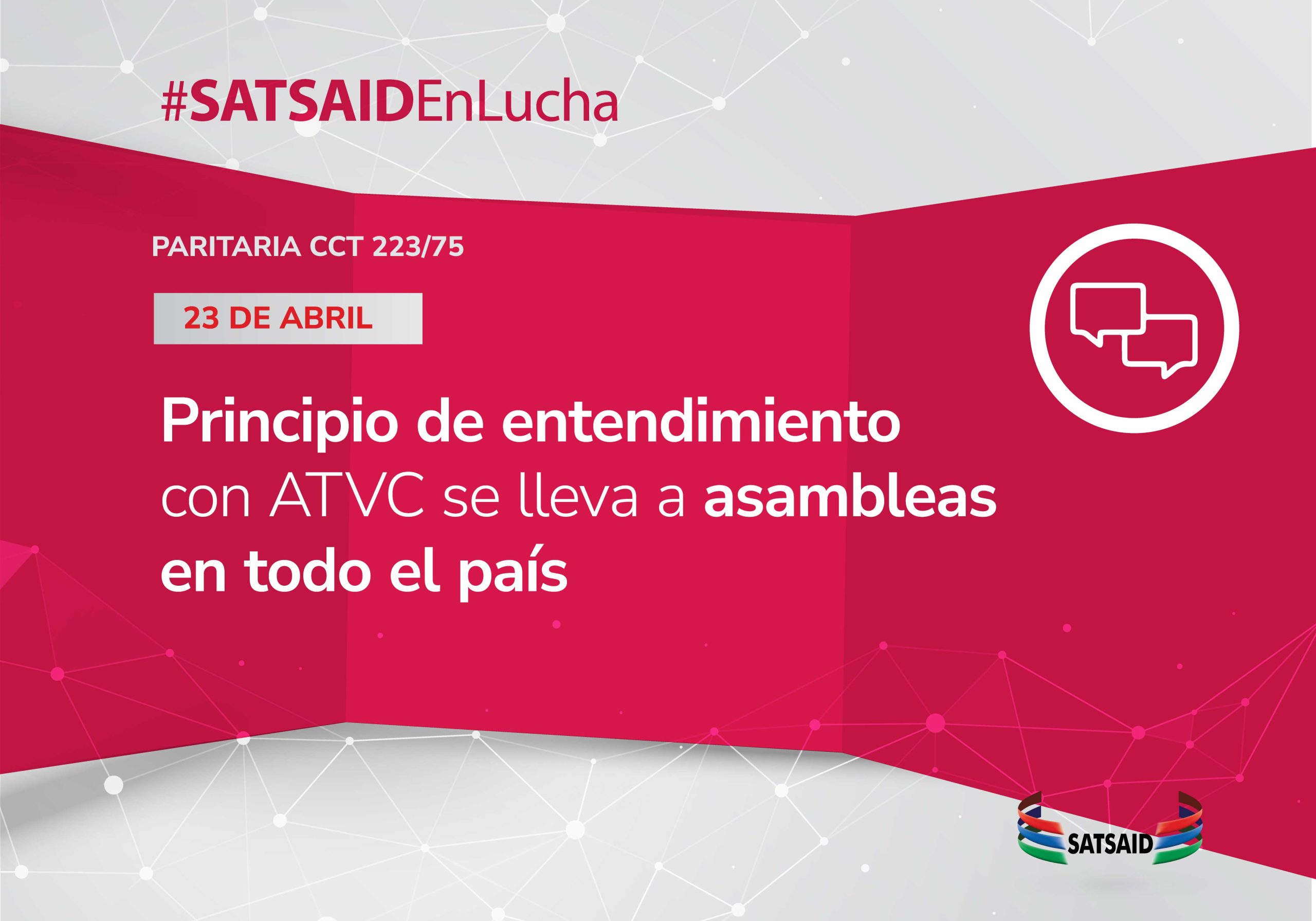 El SATSAID alcanzó un principio de entendimiento con la Asociación Argentina TIC, Video y Conectividad (ATVC) en la negociación paritaria para las trabajadoras y los trabajadores encuadrados en el Convenio Colectivo de Trabajo 223/75.