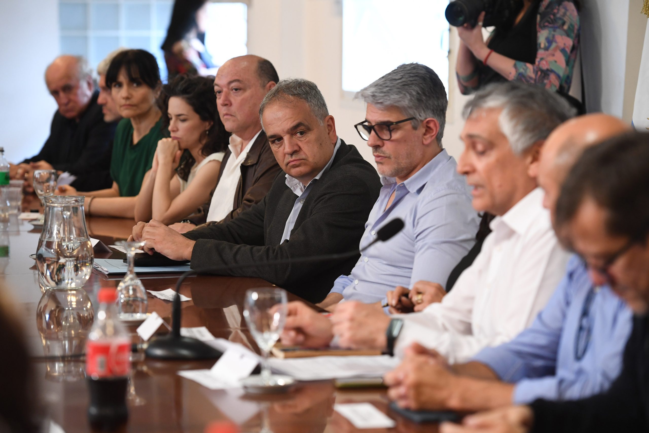 Estuvieron presentes en la reunión representantes de las tres centrales obreras del país; de todas las entidades de gestión colectiva de derechos autorales, de composición y de interpretes; y de todas las organizaciones gremiales del sector. El SATSAID fue parte de la convocatoria, acompañando al coordinador de la Multisectorial Audiovisual, Guillermo Tello. Allí estuvieron el prosecretario Gremial del sindicato, Pablo Storino; y el prosecretario de Finanzas, Dario Aguilar.