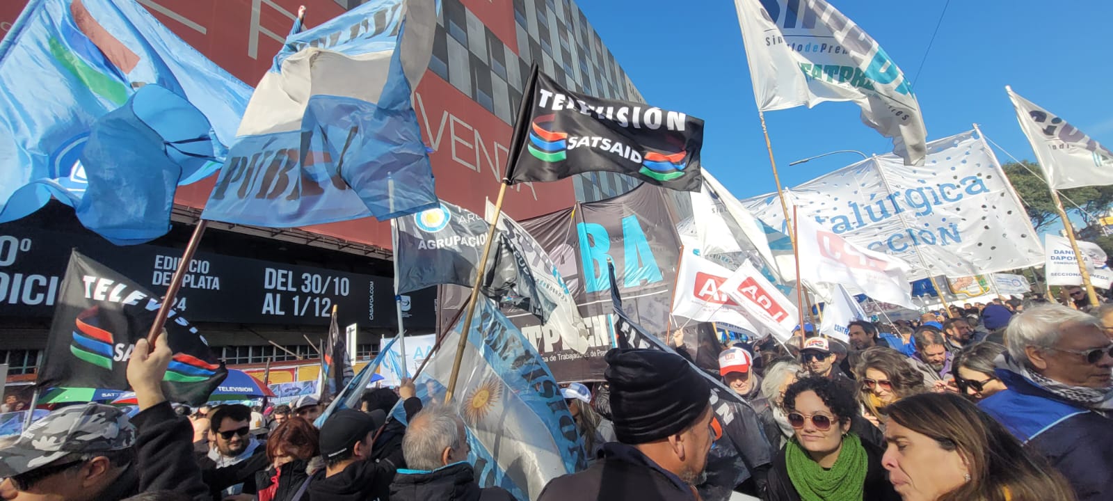En este marco, estuvieron presentes los trabajadores y las trabajadoras de la TV Pública y Contenidos Públicos, quienes continúan con medidas ante la falta de respuestas por parte de la intervención dictada por el Gobierno nacional, que mantiene los salarios congelados desde agosto de 2024.