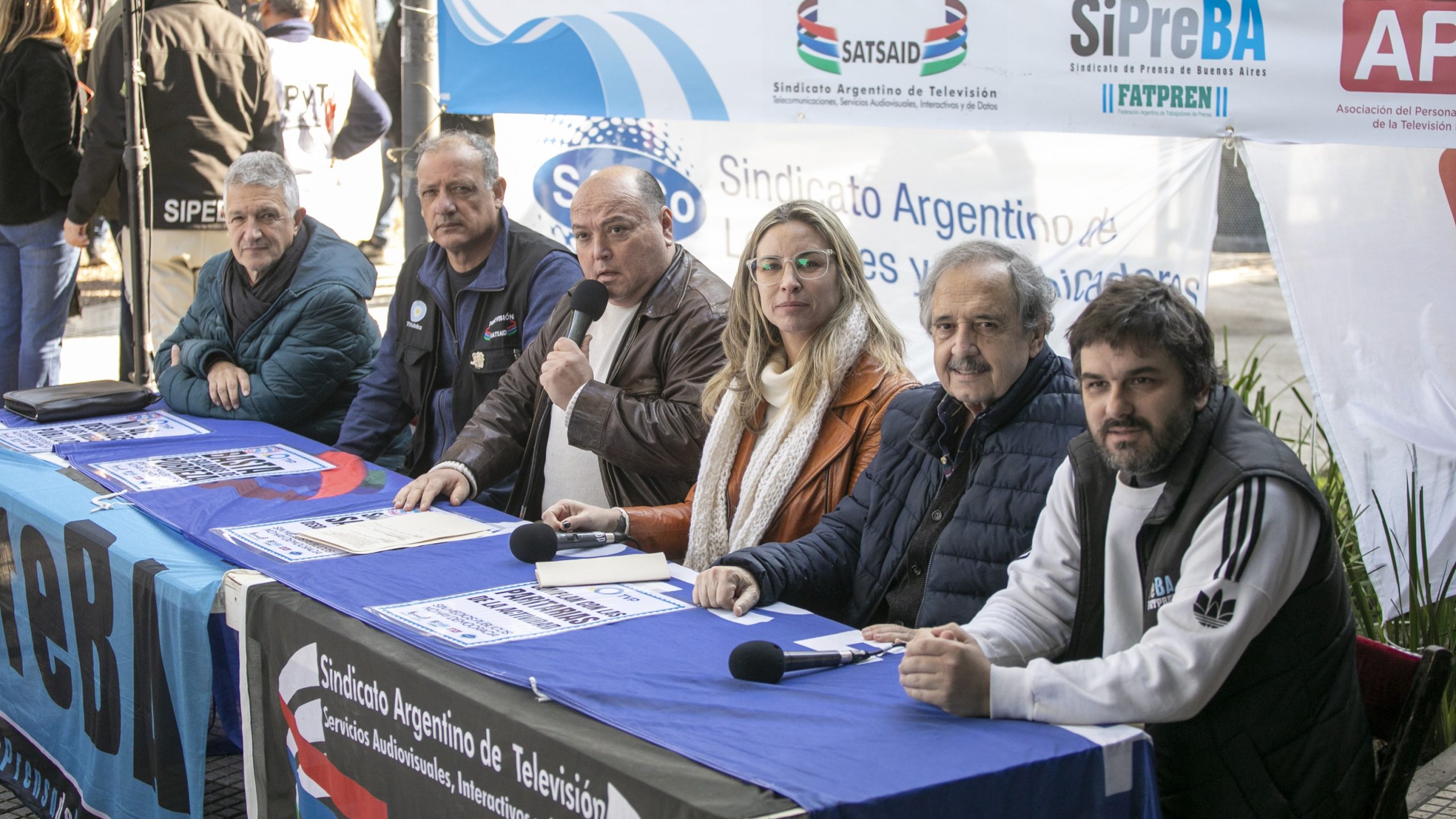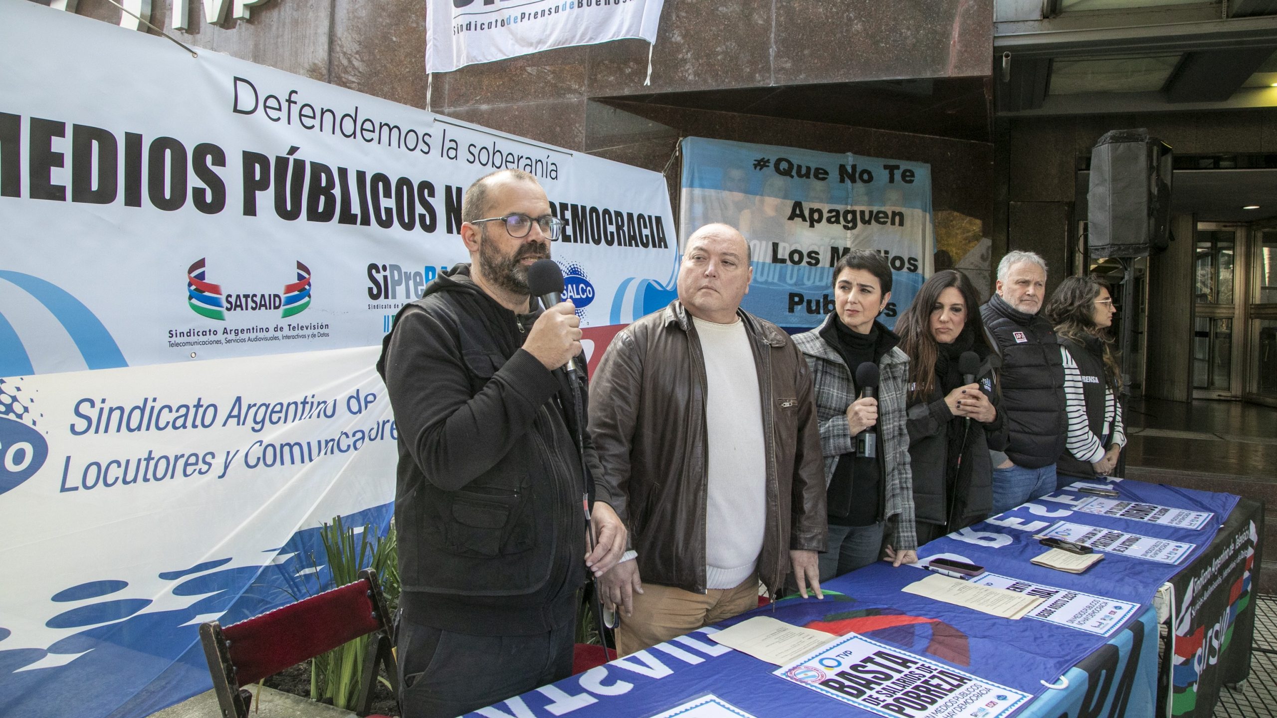 Los trabajadores y trabajadoras de la Televisión Pública, nucleados en todos sus sindicatos, realizaron hoy, en la puerta del canal, una radio abierta con transmisión por streaming, en defensa de los medios públicos y en reclamo por una urgente recomposición salarial.